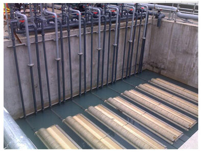 ?。?)調(diào)節(jié)池出水用提升泵提升到缺氧池,同時經(jīng)過曝氣硝化過的污水回流進行反硝化脫氮。出水進入接觸氧化池,通過曝氣進行好氧生化處理同時進行硝化反應(yīng)。